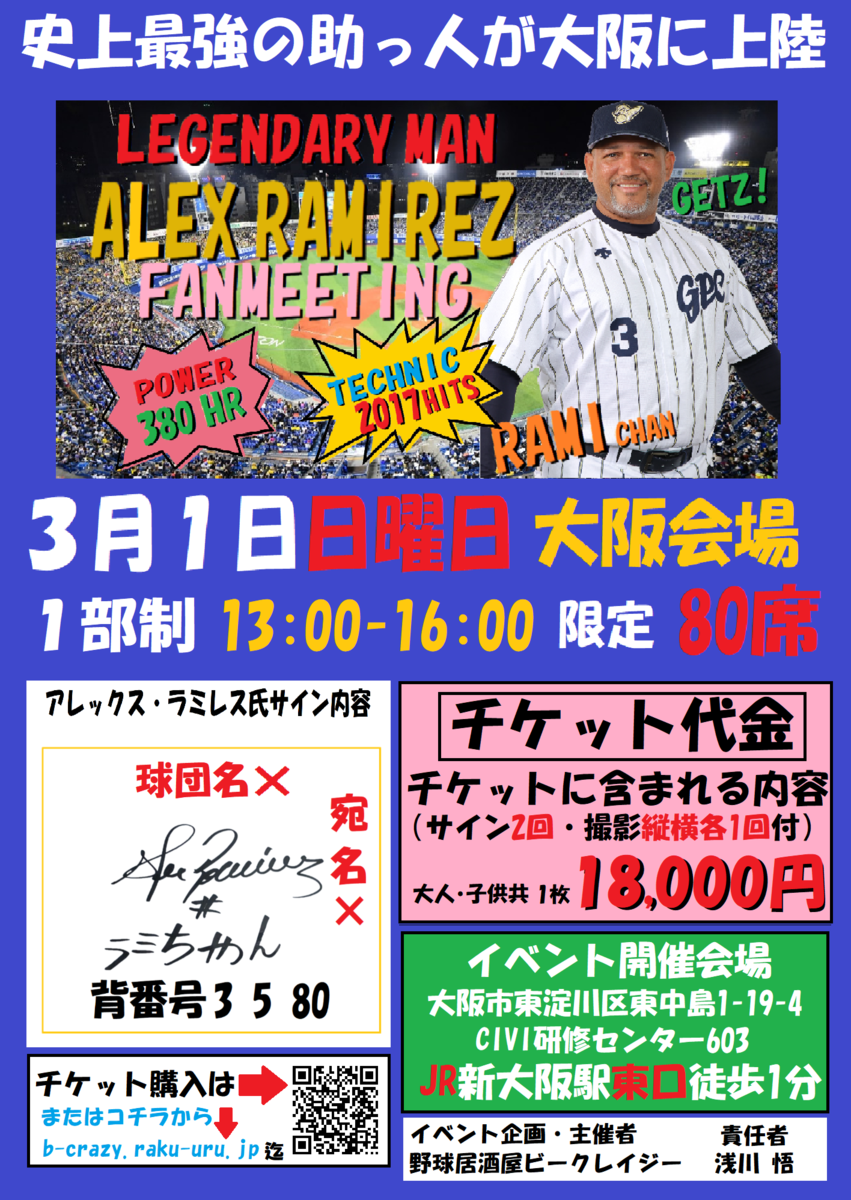 3月1日開催 アレックス・ラミレス氏 ファンミーティング